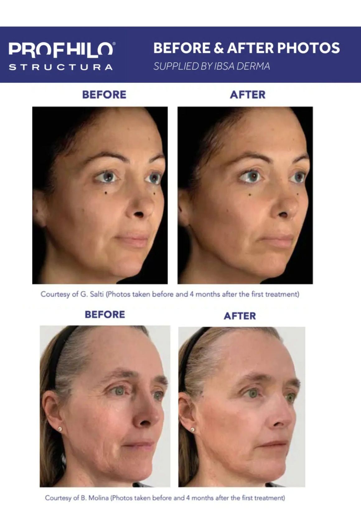 Profhilo Structura combine les bienfaits du traitement Profhilo classique, qui stimule les fibroblastes et revitalise le derme, avec une action spécifique de Structura qui restaure les volumes sous-cutanés en régénérant la graisse faciale.